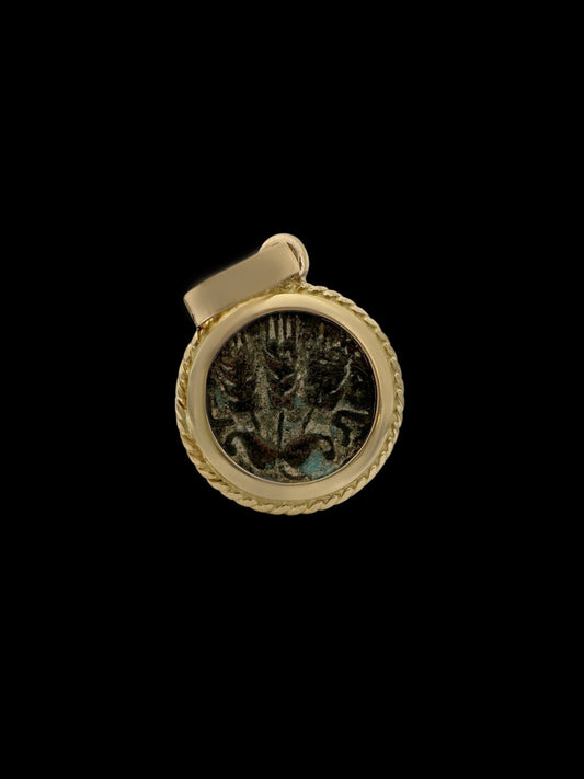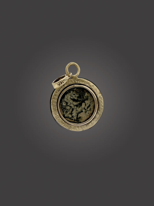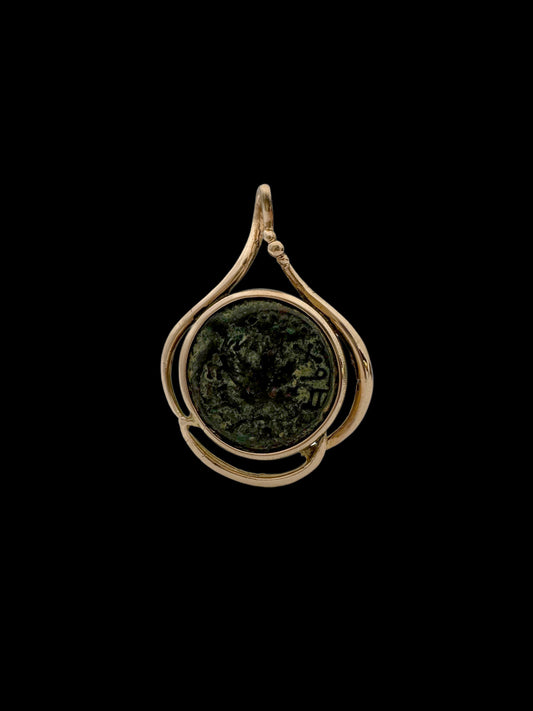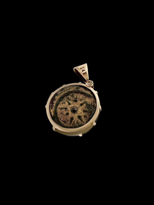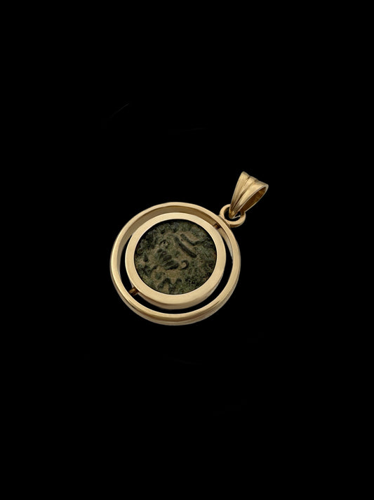 Ancient Widow’s Mite / Jewish Hasmonean Coin Set in Solid 14K Gold Pendant