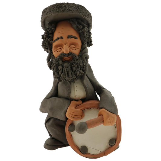 Handcrafted Ceramic figurine portraying a Jewish man Playing a Drum with a Mallet