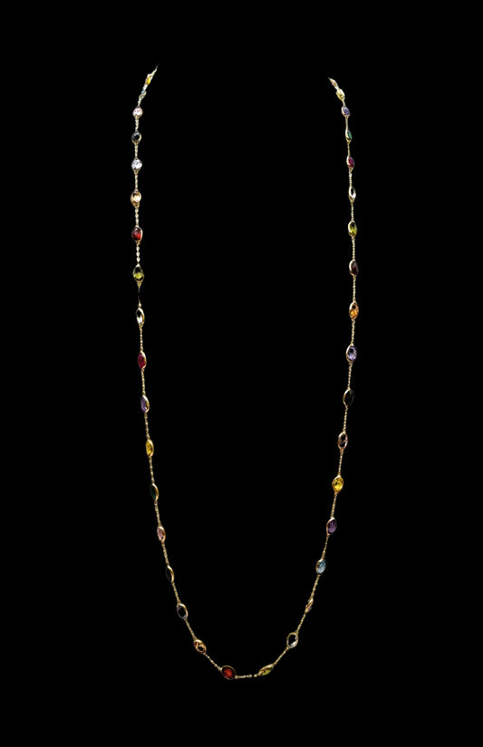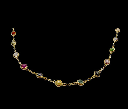 Solid 14K Gold Multi-Gemstone Necklace – Colorful Radiance