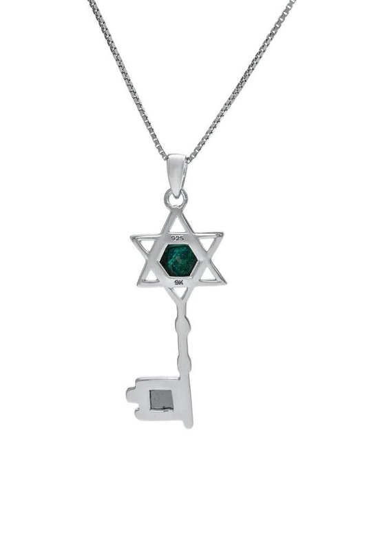 Jerusalem Nano Bible Torah Pendant Key Star of David Necklace Silver 925 Gold 9K with Eilat Stone I Gift from Holy Land I Religious souvenirs