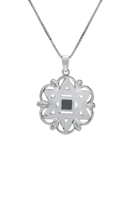 Jerusalem Nano Bible Torah Silver and 9K Gold Pendant - Star of David with Floral Shape I Gift from Holy Land