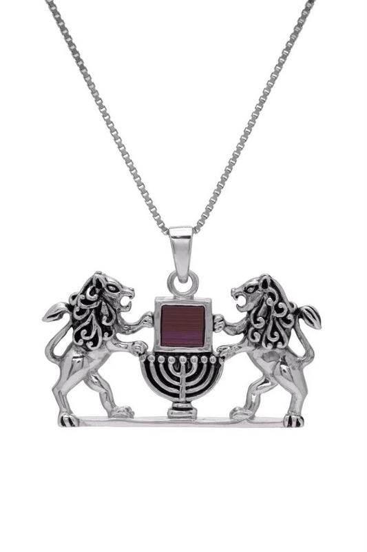 Lion of Judah Necklace with Lamp - Nano Sim Old Bible Torah, Silver Pendant