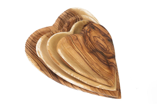 Olive Wood Heart-Shaped Plate Set – Handcrafted Nesting Bowls (Set of 4)