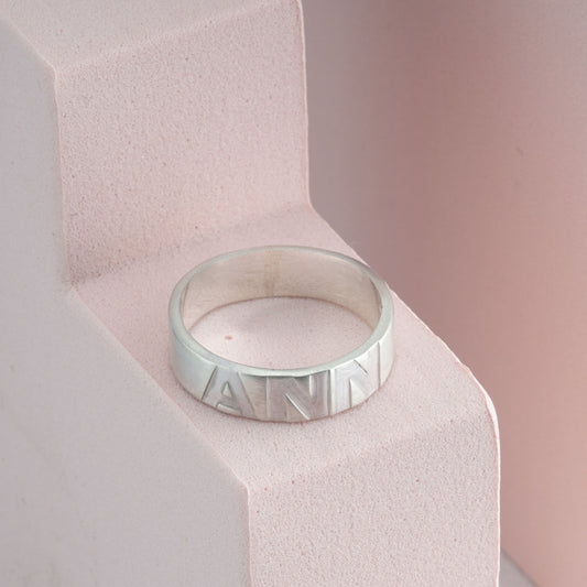 Block Letters Custom Name Ring